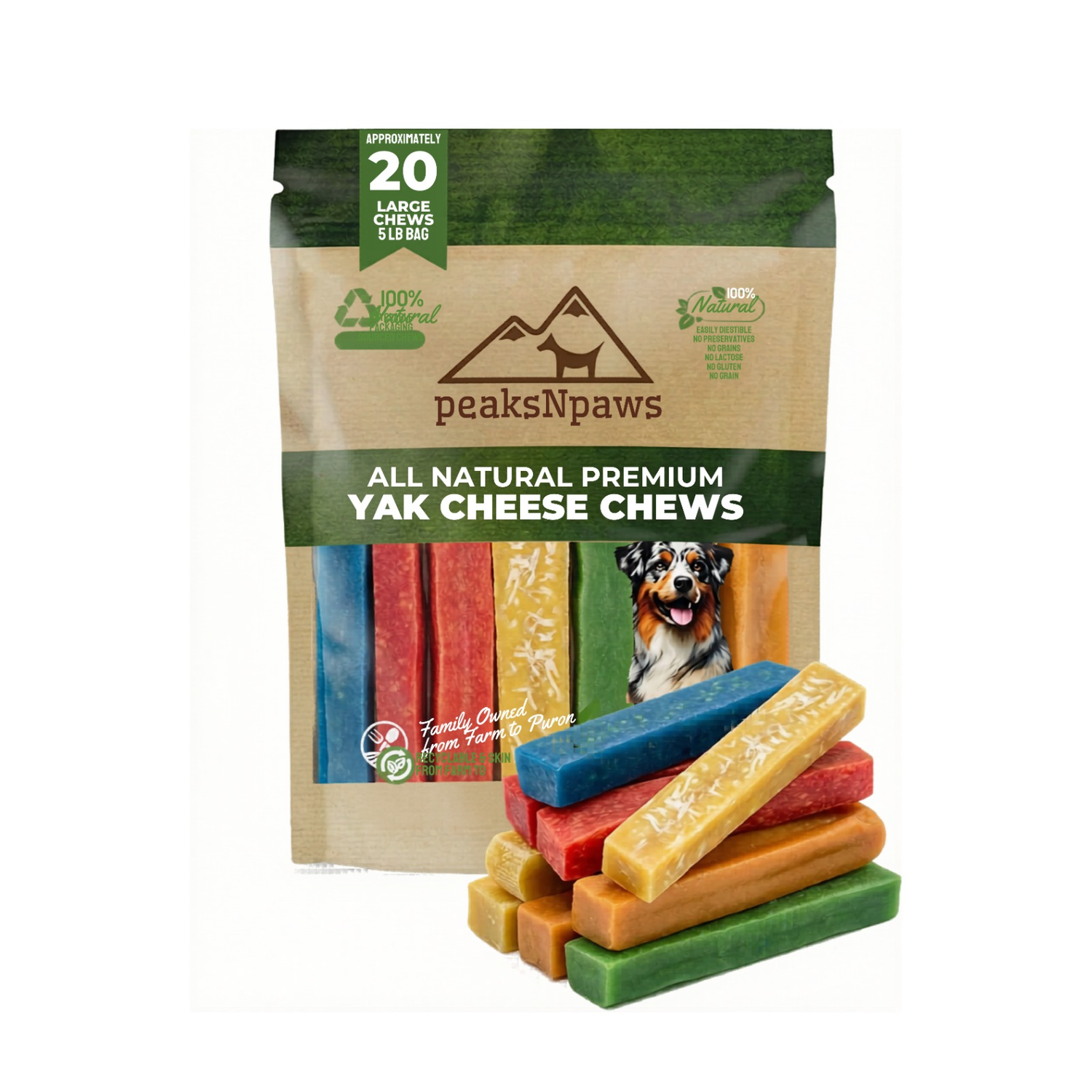 Natural Yak Chews from Himalayan Mountains - Grain Free, Lactose Free - Easily Digestible, 100% Eco-Friendly Packaging