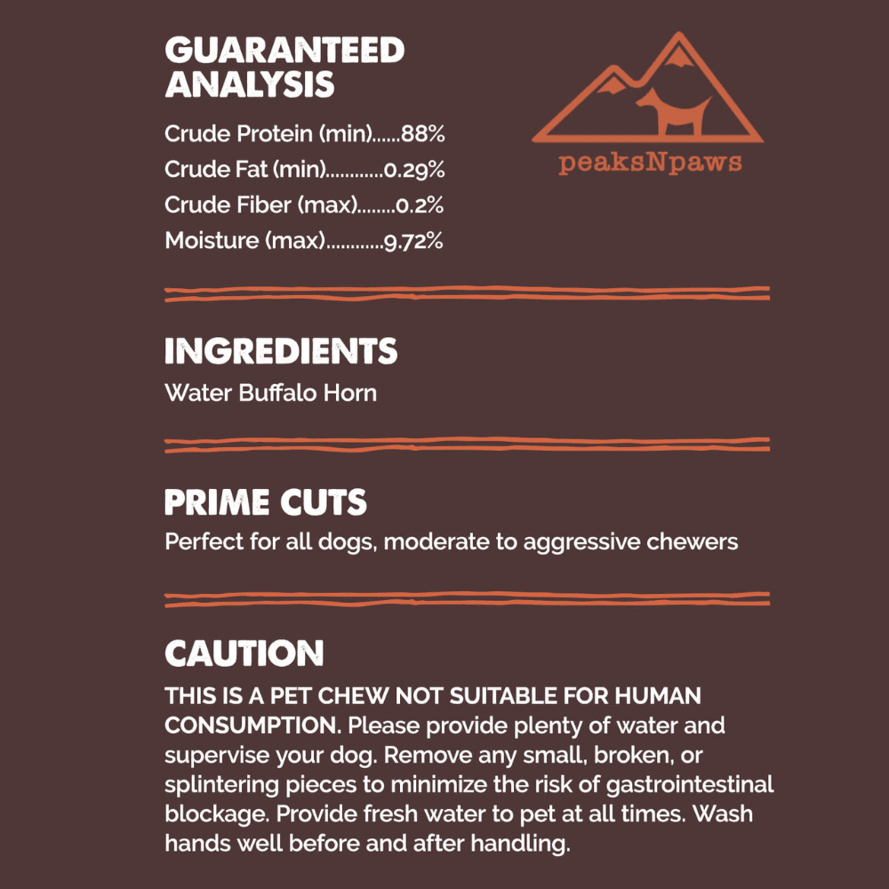 NUTRITION RICH: peaksNpaws Buffalo Horns are high in protein and low in fat. The bone core is covered by a resilient sheath made of keratin, rich in vitamins and minerals. They are also high in calcium and phosphorus, which are vital for healthy, strong bones and muscles. As a result, buffalo horns can be an excellent addition to your dog’s diet.