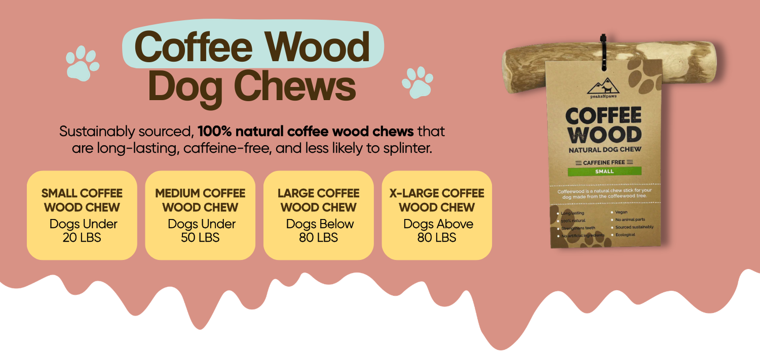 peaksNpaws All-natural coffee wood chews are one of the best quality sticks you’ll find in the market, sourced in a sustainable way without harming the environment. There is nothing man-made here, no preservatives and long-lasting. Due to their unique nature, the chews can vary in size, shape, color and weight.